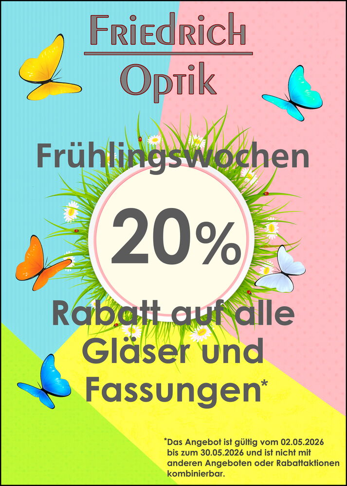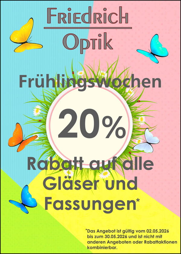 20% Rabatt auf alle Gläser und Fassungen*